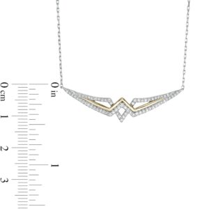 Crafted in sterling silver and warm 10K gold, this style showcases silver diamond-lined ribbons sculpted into an angular tiara design. A polished gold ribbon adds interest and depth. Captivating with 1/4 ct. t.w. of diamonds and a brilliant buffed luster, this look suspends centered along an 18.0-inch cable chain, with an additional closure ring at 16.0 inches, that secures with a spring-ring clasp.This exclusive fine jewelry collection inspires you to wear your strength, confidence and power.
